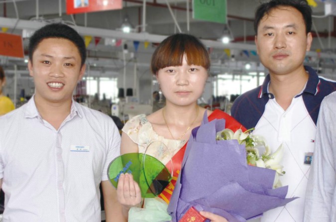 漂亮又深具親和力的黨亞杰小姐是賽爾美服飾有限公司熟練的縫紉工,她是該廠第一批使用富山H9180N-7C的縫紉工之一,至今使用富山H9180N-7C已一年之久,一直承接拼縫這道工序。小黨之前使用日本知名品牌的平縫機(jī)每天的產(chǎn)量大約是300件,而現(xiàn)在使用富山H9180N-7C每天的產(chǎn)量達(dá)520件左右,效率有了明顯的提高.是賽爾美服飾有限公司表現(xiàn)突出的優(yōu)秀縫紉工之一,同時(shí)也是使用富山H9180N-7C產(chǎn)量最高的縫紉工之一,當(dāng)選為富山第十三期科技天使!